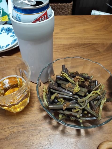 お客様からいただいた蕨で晩酌!